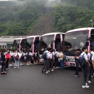 各体験を終え、道の駅『ピュアライン錦』に集まり、クラスのバスに乗り換えて、宿舎に向かいます。