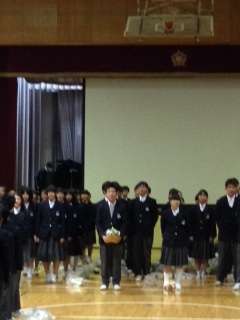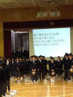 在校生から歌のプレゼントをし、3年生からもお返しの歌をプレゼントしてもらいました。