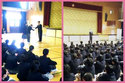 1,2年生それぞれ学年の課程を修め、代表者が修了証を受け取りました。