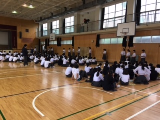 3年生はいよいよ来週、《修学旅行》です。今日の午後、実行委員会のメンバーが取り仕切って、現地での様々な場面の集合隊形の練習をしました。