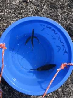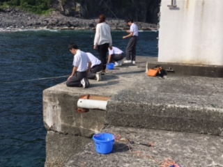 磯釣り班、なかなか思うようにはいきませんが、フフグとイワシが食いついてくれました。
