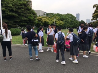 横浜の街をそれぞれの班が楽しんだようで、笑顔の集団が続々と山下公園に集まってきました。