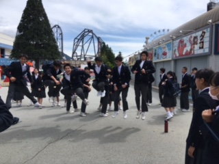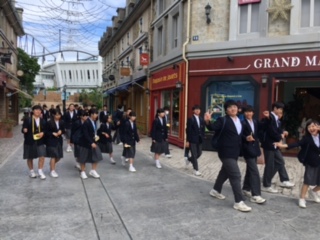 いよいよ修学旅行最後のお楽しみに到着しました。入園前から気分は上げ上げです。