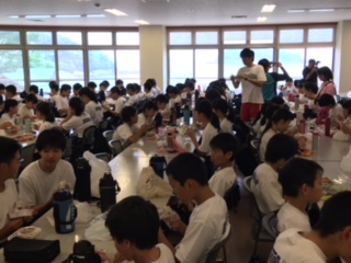 朝からバスに乗ってただけですが、みんなお腹がペコペコのようで、景色のいい食堂で、楽しいお弁当です。昼食後は、いよいよカヌー・カヤックに挑戦です。