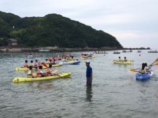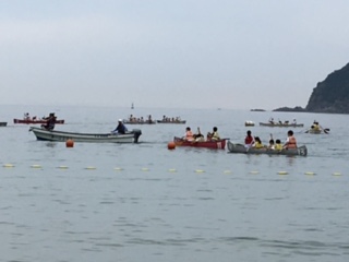 海へ入るなり、けっこうどの艇も上手に漕げています。ちょっと混んでる感がありますが、生徒たちはすぐに慣れてきました。