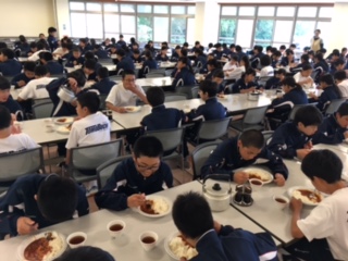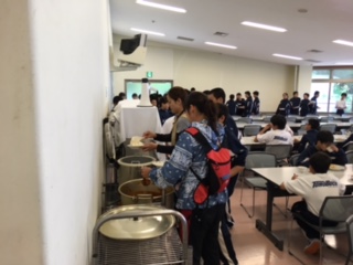 大きなジャー2つのご飯、大きなお鍋二杯のハヤシのルーのお代わりが、たちまちなくなりました。行列、こんな感じです。