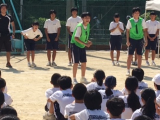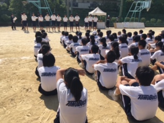 閉会式。暑さの中、疲れが見える生徒の前に立った体育委員は、最後の盛り上がりを創ってくれました〜。自称サンシャイン君が底抜けの明るさで、はち切れてくれました〜、今後が大いに楽しみです。