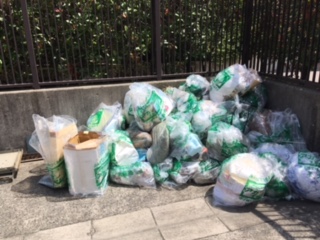 50名ほどの地域の方々と150名ほどの生徒が1時間友渕の町を清掃しました。予想以上にたくさんゴミが集まりました。