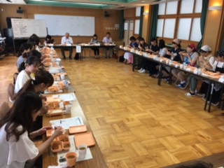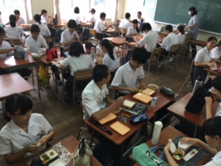 今日はPTA主催で給食試食会をしています。PTAの委員さんや保護者の方が30名ほど来られて、今日の給食を一緒に食べました。都島区役所から区長さんや課長さんも参加していただき、保護者の方々のご意見を様々な視点からお聞きしました。生徒たちの昼食時間には、食事の様子も実際に見ていただきました。