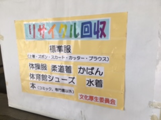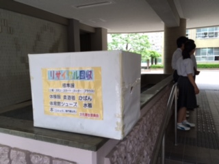 友渕中学校PTAの活動で、毎年リサイクル品の回収をしています。7月5日付けでPTAからお知らせさせていただきましたように、今日から来週の水曜日まで、朝8:00〜8:30に正門で写真のボックスを置いています。標準服、体操服、体育館シューズ、水着、柔道着、カバンなど不要になったものをご提供いただけるとありがたいです。回収した服等は、秋の文化祭当日に行うリサイクル会で必要な方にお渡しします。