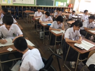 明日はいよいよ2年生の職場体験です。224名の2年生が、62箇所の商店や事業所に分かれて、仕事を体験させていただきます。1学期からいろんな準備を重ねてきました。今日はしおりを使って最後の確認です。