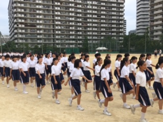 明日に予定していた学年練習は、今日午後から当分雨の予報の為、今日の午前中に行いました。行進や、ラジオ体操の他、学年演技の練習に力が入ってきました。