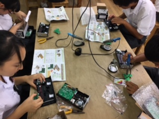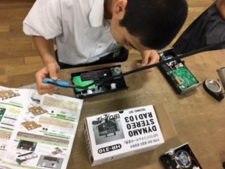 本校の2年生の技術科の授業で、今日はラジオ製作をしていました。はんだ付けの作業中でしたが、みんな初めてにしては上手にできています。完成すると家に持って帰りますが、ぜひ防災グッズとしても大切にしてほしいものです。