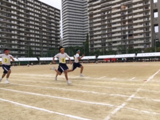 開会式、ラジオ体操、60mハードル、60m走、100m走と続き、現在、1年学年競技が終わったところです。