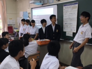 今日は、各班ごとで計画した起業プランをプレゼンテーションして、各自がここに!という会社に投資する場面でした。