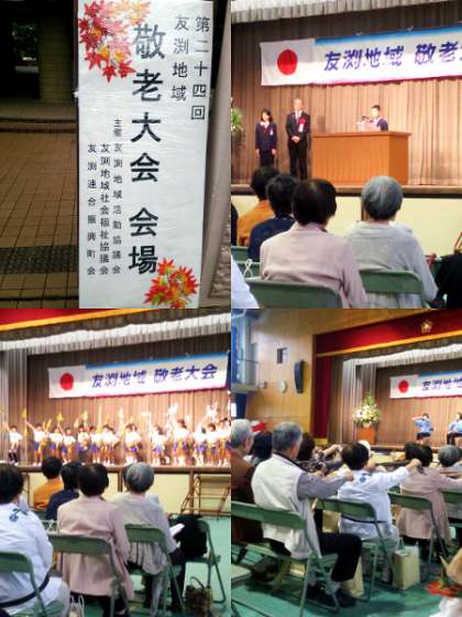 15日(日)午後から体育館で、友渕地域活動協議会、友渕地域社会福祉協議会、友渕連合振興町会主催の《第24回 友渕地域敬老大会》が行われました。