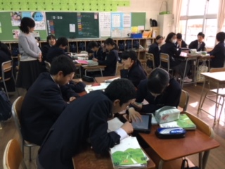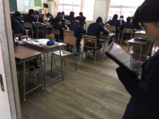 残念ながら、まだ全教室にWi-Fiが整備されていないため、このクラスでは、ドアの前でパソコン教室からのWi-Fiを拾っています。