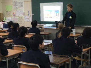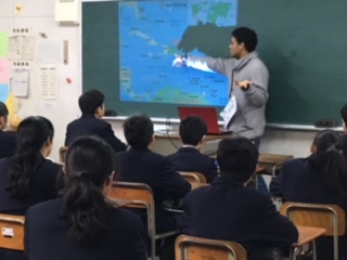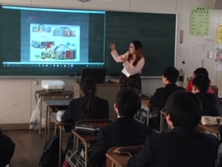 その後は、各クラスに戻って、留学生2人ずつに入っていただいて、それぞれの国の紹介をしていただきました。普段の暮らし、学校、食べ物、仕事・・・。