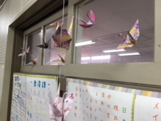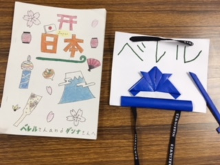 今日のために、折り紙で教室を飾ったり、留学生の方に日本の紹介ブックを手作りで作成したりしました。