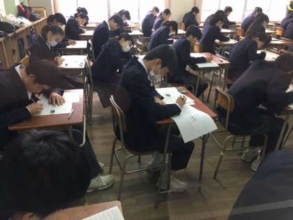 今日から水曜日まで3年生の学年末テストです。3年生にとっては中学校での最後のテストとなります。