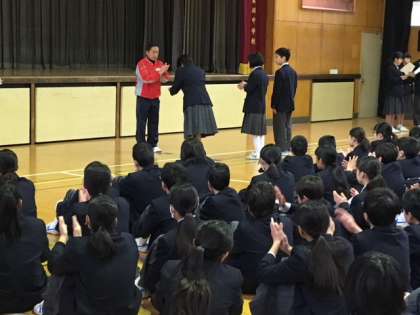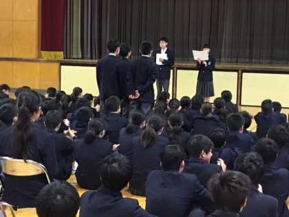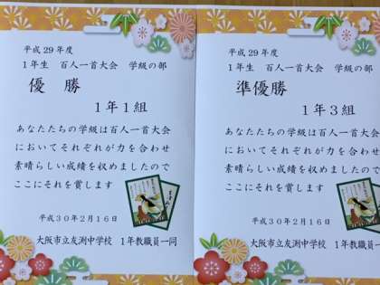今朝の1年学年集会で、先週の金曜日に行われた百人一首大会の表彰がありました。