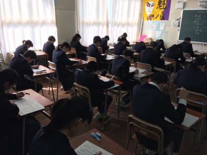 1・2年生は、今日から3日間、学年末テストです。今日の科目は英語・数学・音楽。