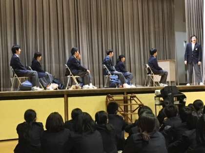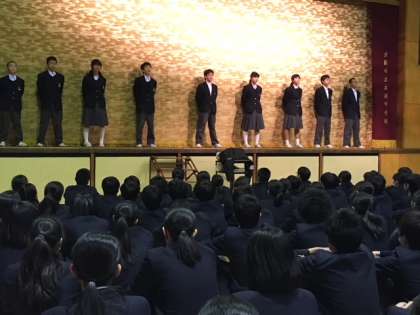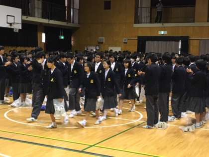 まずは、在校生全員で花道を作って三年生を盛大な拍手で迎えます。そして、在校生代表による感謝のことばリレーです。