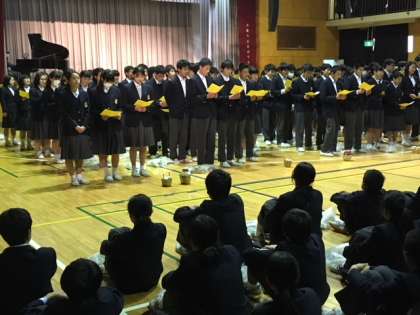 在校生からの贈りものと歌のお礼に、三年生からも全員で歌をお返ししました。