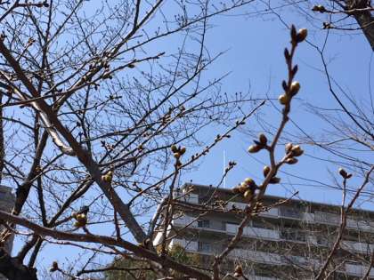 春らしい陽気となって、学校周りの桜が急に膨らんできました。