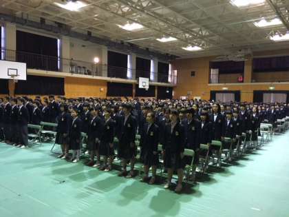 在校生として、2年生全員が入って、本番さながらの雰囲気を体験しました。あすの卒業式では、在校生の出席は生徒会役員と2年生の各委員の生徒だけなので、来年の為にも緊張感を堪能しました。