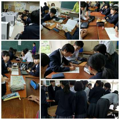 パソコン室や教室で、ネットを使って横浜市内散策の情報を調べています。部屋割りを相談しているクラスでも色々と盛り上げっています。