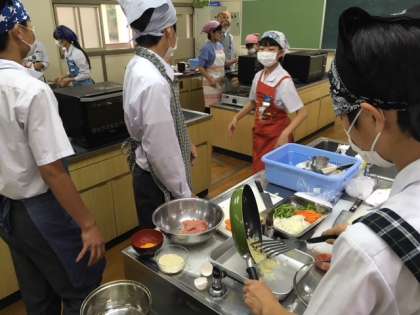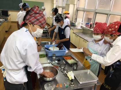 2年生での調理実習です。今回の献立は、ハンバーグ・スープ・クッキー。