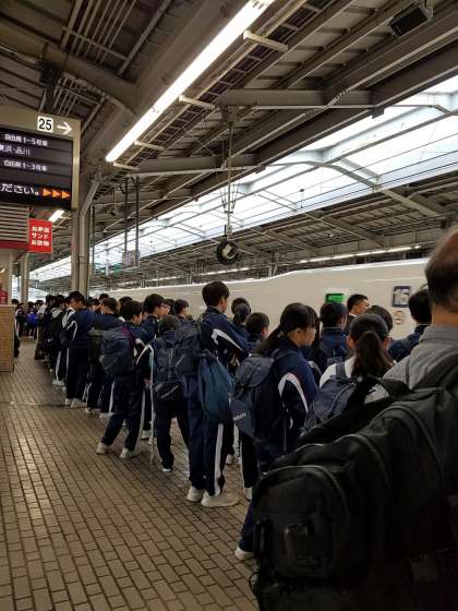 いよいよ新幹線ひかり460号が新大阪のホームに入って来ました。広島初なので停車時間は2分しかありません。練習したかいあってスムーズに乗り込みました。8時43分スムーズに出発しました。