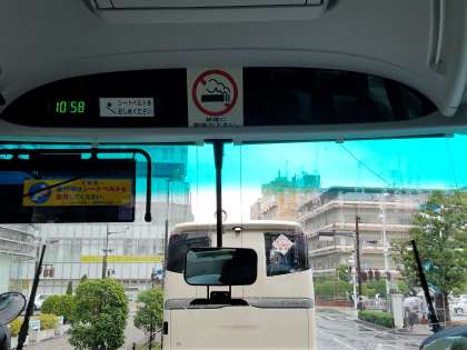 静岡は雨でした。バスに乗り込み、自然体験に向かいます。パラグライダーは残念ながらカヌーに変更になりました。