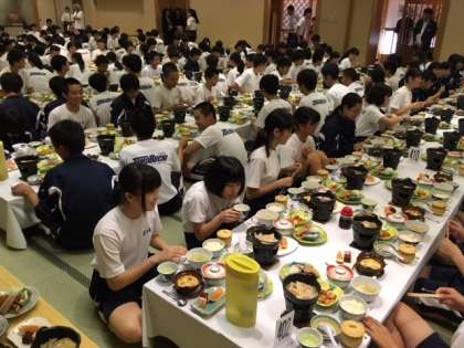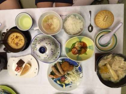 今日のお宿、富士河口湖畔の花水庭おおやさんでの夕食です。