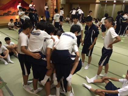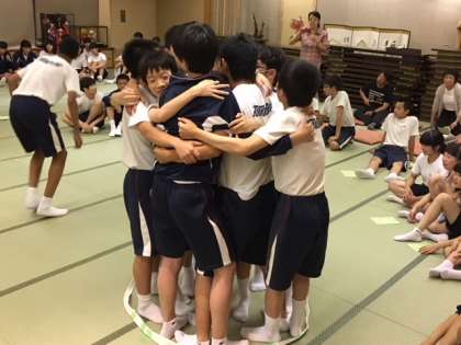 クラス対抗で小さな枠の中に何人入れるか、という単純なゲームやけど、いきなり、えらい盛り上がりです〜!