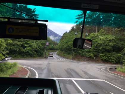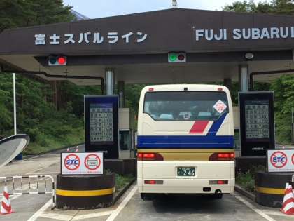 樹海の中を抜けて、富士スバルラインに入ります。山頂に雪を頂く富士山。その姿はさすが、世界遺産!