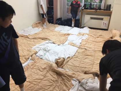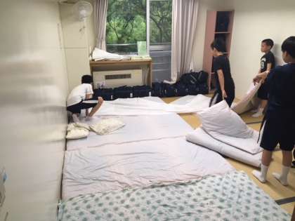 室ごとに入浴中です。入浴の済んだ班は、布団の準備をしています。