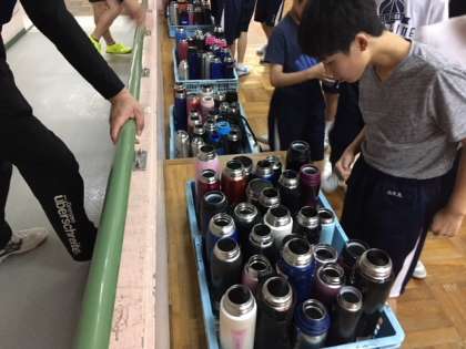 夜のお茶、200本以上の水筒にお茶を入れるのも、ひと仕事でした〜。