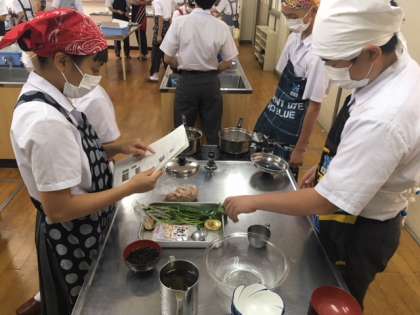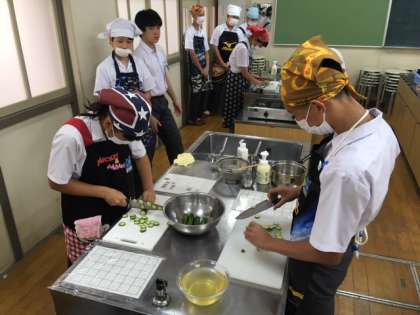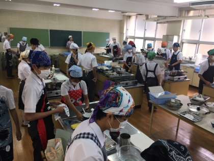 2年生の家庭科で、調理実習をしていました。