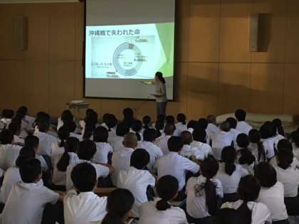 2年は教室で道徳の授業、3年は格技室で平和学習を行いました。