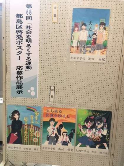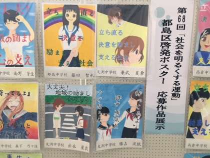 ポスターは、都島区内の中学校から80点近くの応募があり、本校から美術部員の作品がたくさん受賞しました。