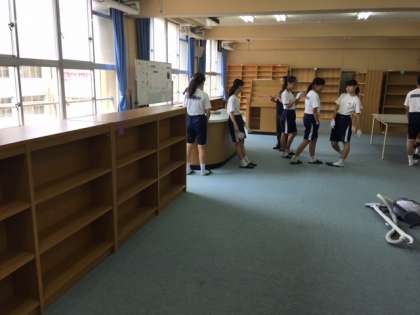 この夏、友渕中学校の図書館を改造しています。図書委員会のみんなが、汗だくで作業をしてくれています。