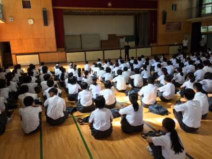 いよいよ来週から始まる新学期に向けて、3年生としての心構えと、進路の高校体験入学の説明をしました。