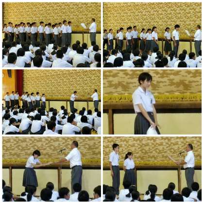 始業式に続いて、この夏に獲得した賞状の伝達をしました。