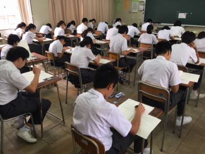 今日、3年生はチャレンジテストに取り組んでいます。これは、元々6月に実施予定でしたが、大阪府北部地震の影響で延期になっていたものです。
