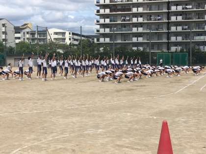 1学期から、少しずつ練習を重ねてきているので、学年全体での練習は、今日が初めてですが、もう息の揃った迫力ある友中ソーランが見れました。これからまだまだ磨きと勢いが増していくのでしょう〜。