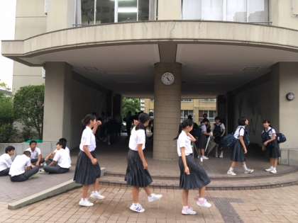 新しい時計の設置祝いに、玄関にいた3年生女子が、喜びの舞いを披露してくれました〜。