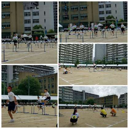 プログラム2番、60mハードルです。素晴らしいテンポでハードルを越えていきます。3年生の応援席から歓声がわきます。