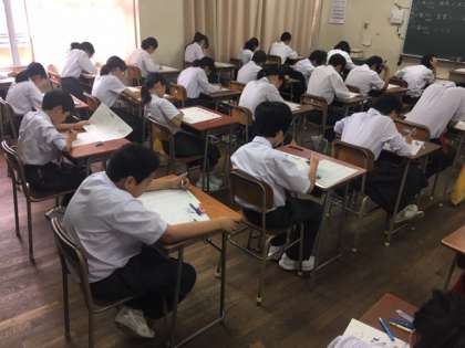 どの学年、どのクラスも、物音一つしない緊張感で、テストが行われています。